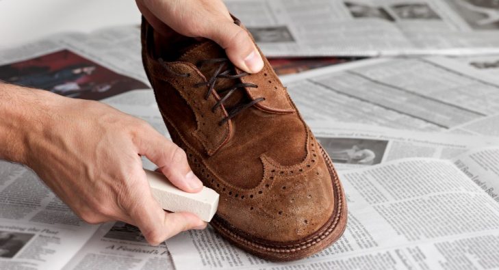 Trường hợp giày dính bùn, nên chờ cho đến khi khô bùn rồi bạn dùng bàn chải mềm để loại bỏ nhẹ nhàng các lớp bùn khô còn bám lại trên giày da lộn. Khi chải bạn nên đi theo một hướng nhất định.